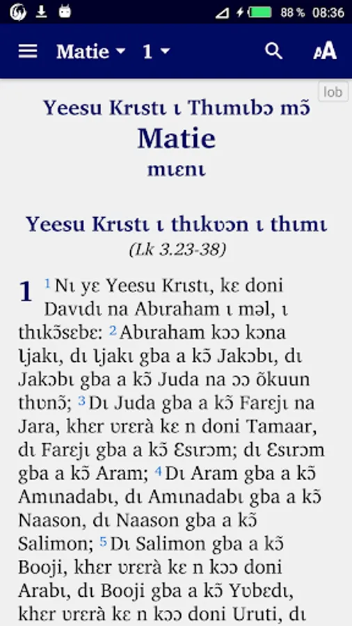 This application presents the Word of God to you in the Lobiri language, spoken in Burkina Faso, Ghana and Côte d'Ivoire.