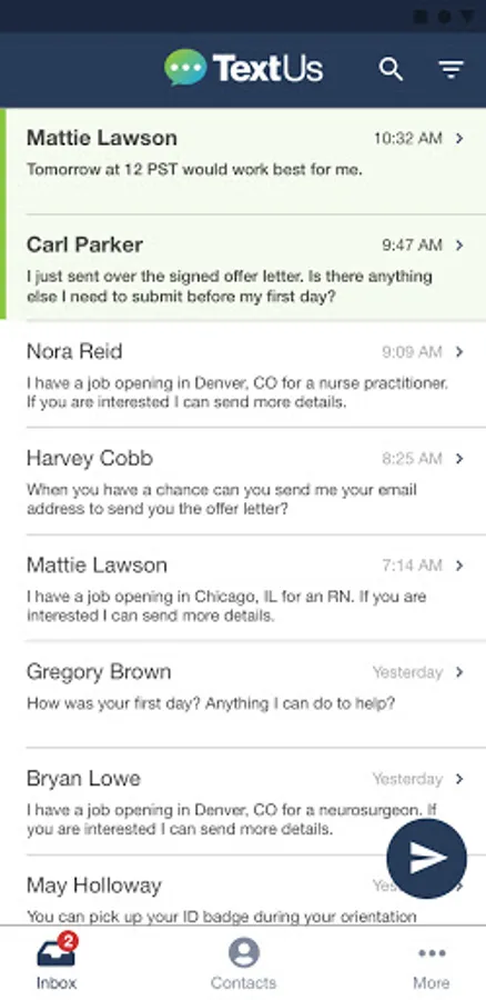 The new inbox looks like any native texting app. Since the text is not scaled down anymore, all text is easier to read. There is added functionality to search by name, keyword, or business. Additional search capabilities will continue to evolve over time. There is also the ability to filter the inbox by unread, unanswered, and by campaign.