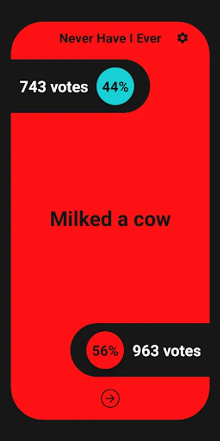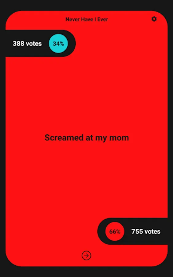 A fantastic way to play Never Have I Ever. Enjoy the game with a group by using the application for questions. Simply choose "Have" or "Never" as your choice for a "Never Have I Ever" question. Never get bored with over 930 questions with multiple categories. View question statistics while playing. Enjoy the game! Any suggestions are appreciated. Try it at a sleepover, at school, or while waiting at a while.
