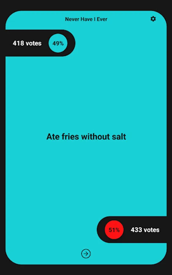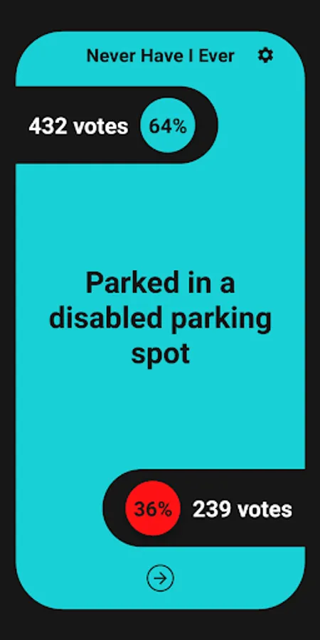 A fantastic way to play Never Have I Ever. Enjoy the game with a group by using the application for questions. Simply choose "Have" or "Never" as your choice for a "Never Have I Ever" question. Never get bored with over 1440 questions. View question statistics while playing. Enjoy the game! Any suggestions are appreciated. Try it at a party, or while waiting at a line!