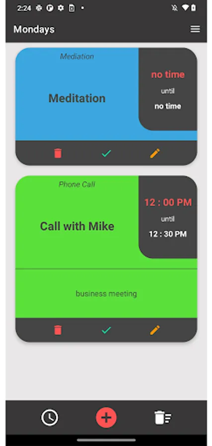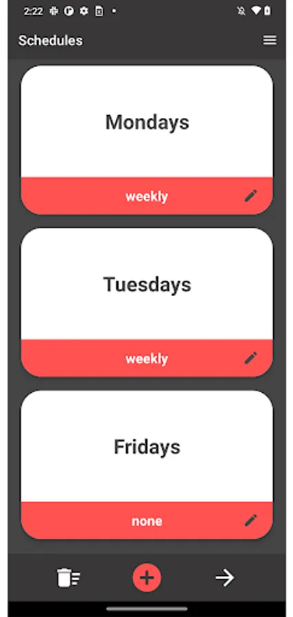 A unique schedule app that allows you to add any number of timeslots to your schedule. Add any number of schedules and times lots. You can arrange your schedules in any order. Time slots can have notes, colors, category as well as finished or unfinished status!