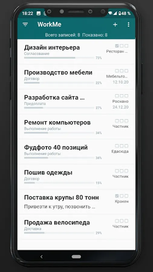 Allows you to organize your order list for small businesses, self-employed and freelancers.