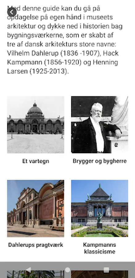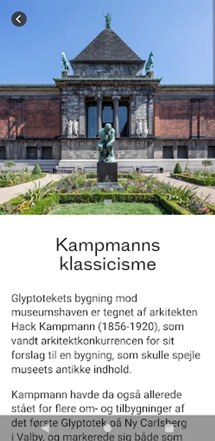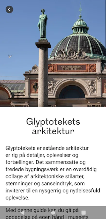 Glyptoteket tilbyder spændende indhold. Som besøgende kan du læse mere omkring stederne eller lytte til lydguides. Hvis du besøger os sammen med andre kan du benytte dig af Samlyt, som sørger for at du kan lytte til lydguides samtidig.