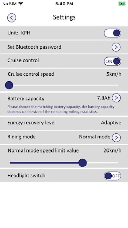 This is a smart electric scooter app. The APP performs wireless data communication with the scooter via Bluetooth. Through the scooter, you can view the detailed information of the vehicle, you can set parameters, and also support functions such as firmware upgrade.