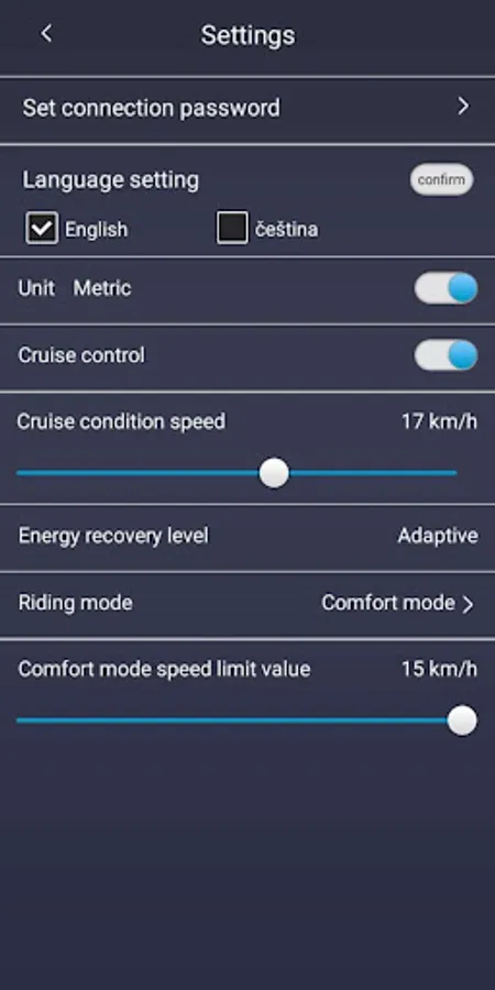 The APP communicates with the e-scooter via BlueTooth. Through the APP, you can view detailed information about your e-scooter, set the parameters and support functions such as firmware update.