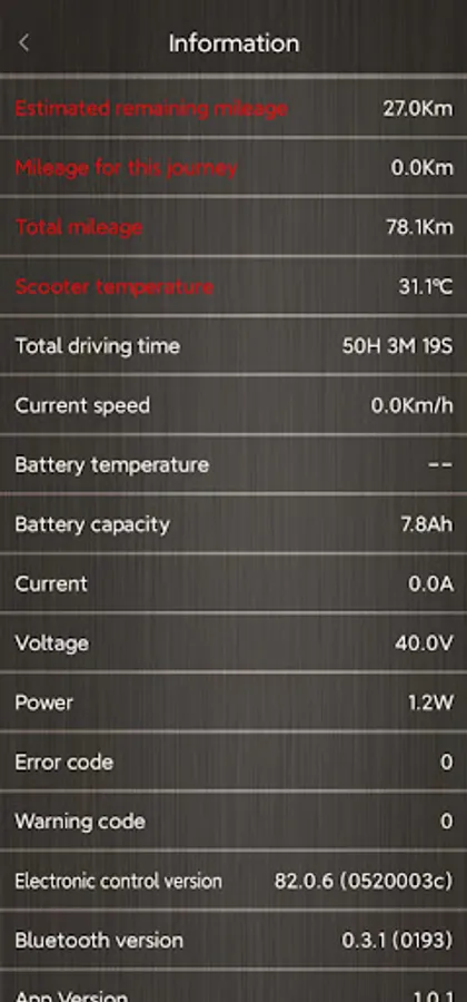 This is an smart electric scooter app. You can view the detailed information of the scooter through the APP, you can set the parameters.