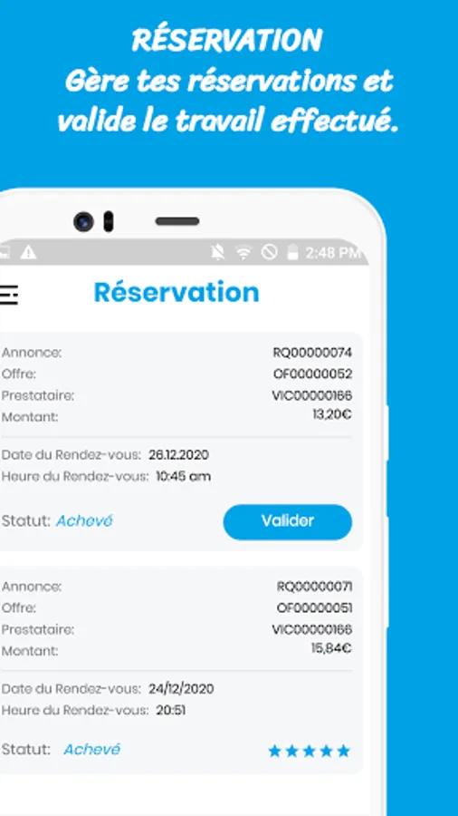 Manage your reservations and validate the work done