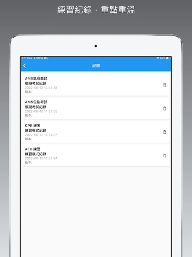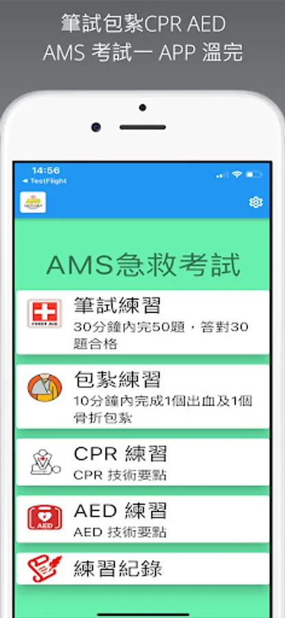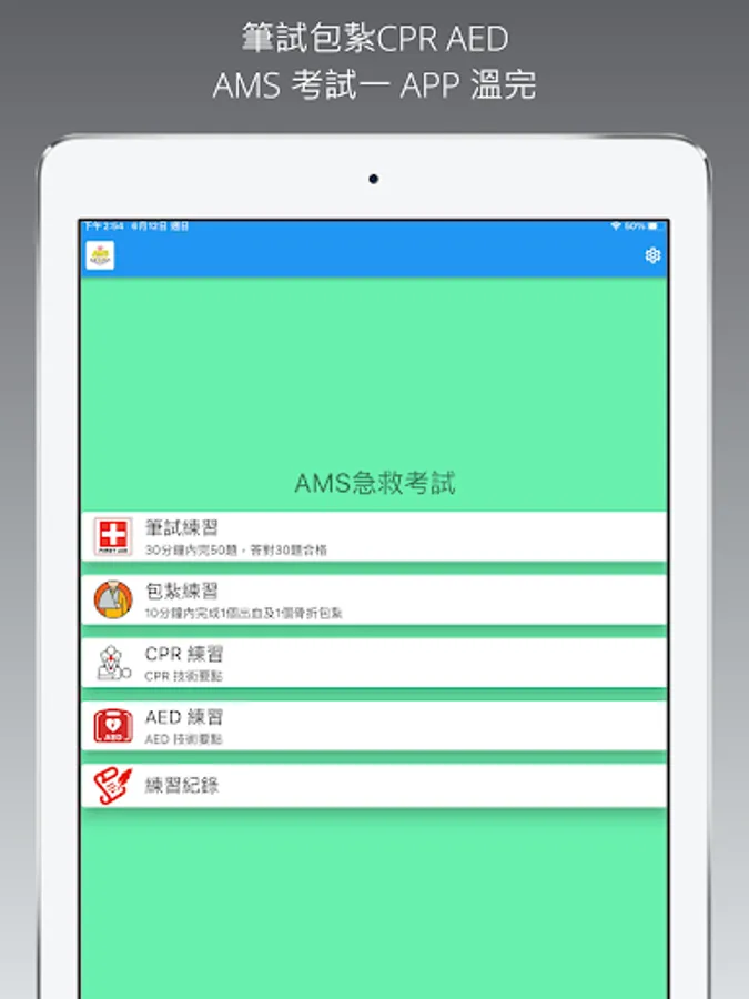 Auxiliary Medical Service (AMS) first aid exam practice, one App contains written exam questions, dressing key points, CPR and AED technical points, which is convenient for review anytime, anywhere.
