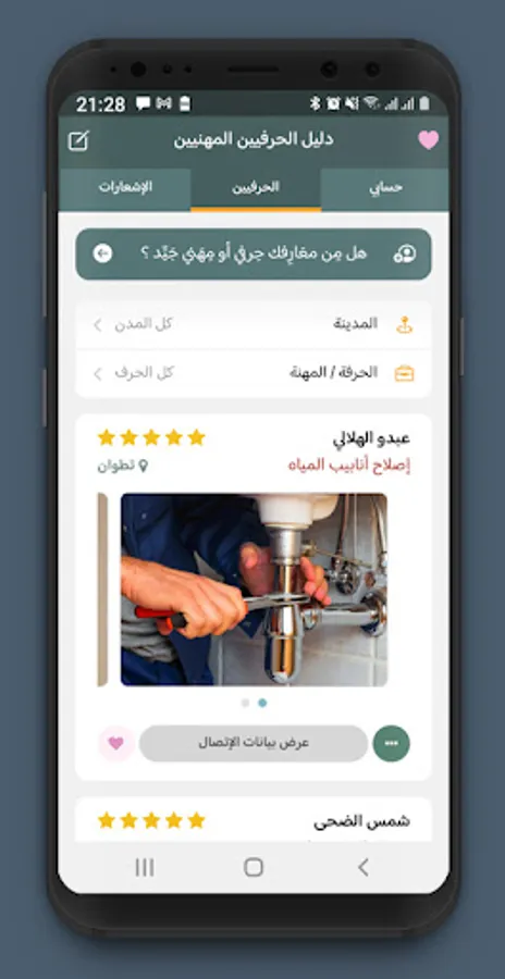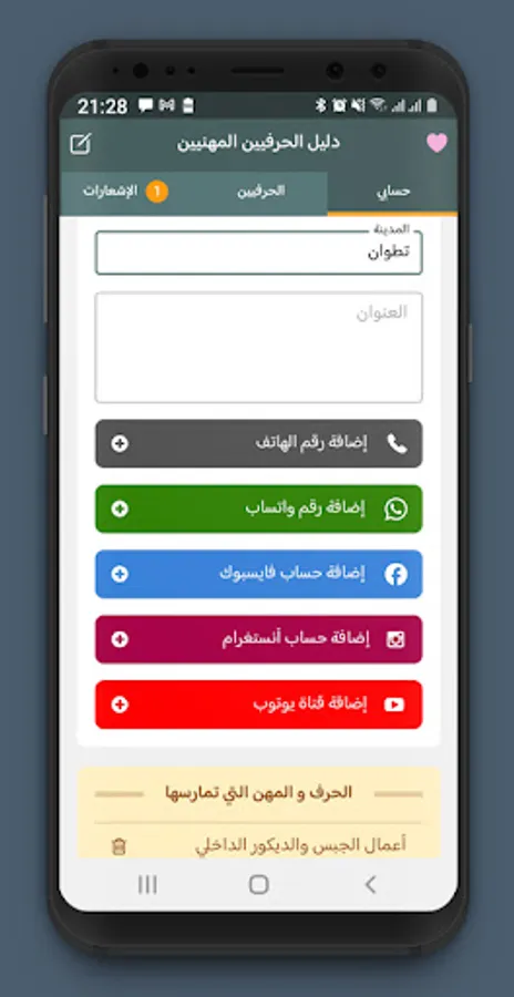 We launched the craftsmen guide application to help craftsmen present their services with ease and ease, and on the other hand, we help in searching for the appropriate, most reliable, effective and quality craftsman, based on the evaluation obtained within the application and through the images that he uploaded and his pages on the means Social media such as Facebook, Instagram, and even his YouTube channel.