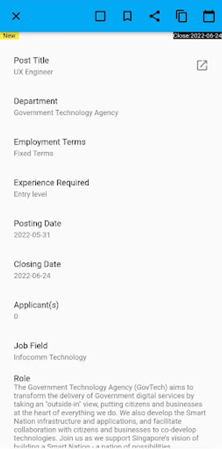 Remark: This is not an official application of Singapore Public Service. All information is retrieved from Careers@Gov website. All information changes are subject to information from the system. For official website, please visit www.careers.gov.sg.