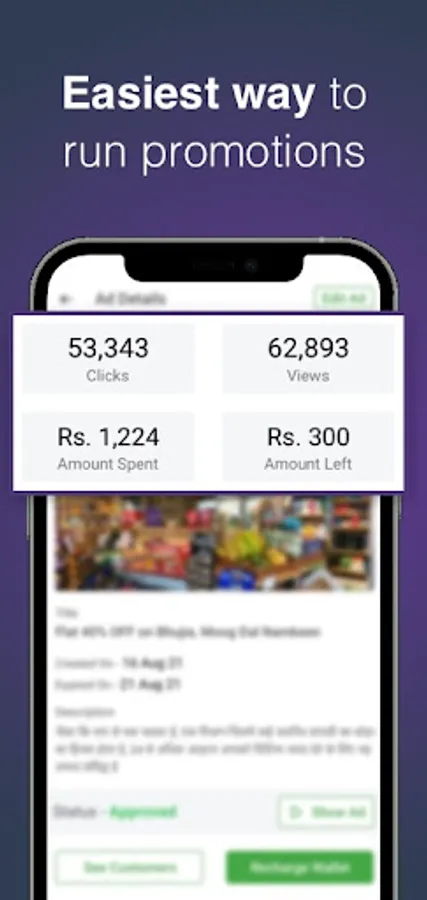 • Your advertisement will instantly go to our large network of 2 crore+ users across our various apps, who will see your offer/service/product/business and start placing orders!