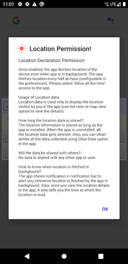 In order to fetch location periodically, the app needs access to location even when the app is running in background. The app displays the location permission declaration and reasons for the background location. Please read the declaration carefully before providing the location access.