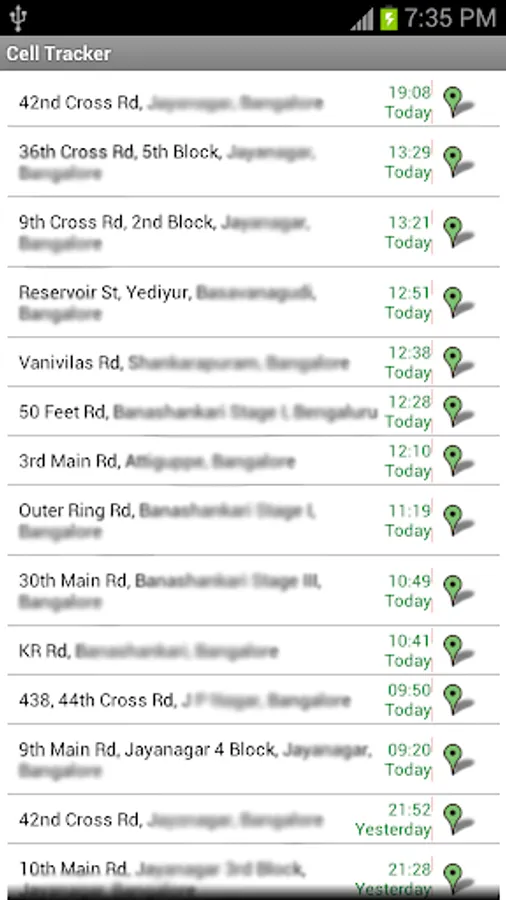 Use Cell Tracker app to keep track of the location of your cell. Track all the locations you have visited in the last few days with your Android phone. To check the locations visited you have to launch the app and click on “View Now”. The application collects location info once every 0.5 hours through GPRS/Wi-Fi and hence the impact on battery is minimal.