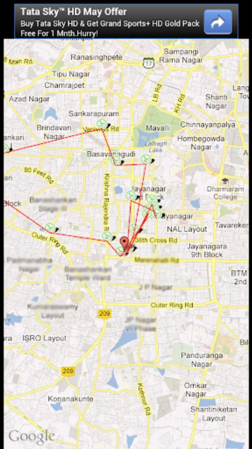 - Click on “View Now” link in the app and you will see the tracks of the cell (locations visited) on Google Map view.