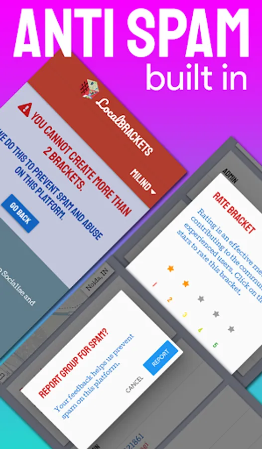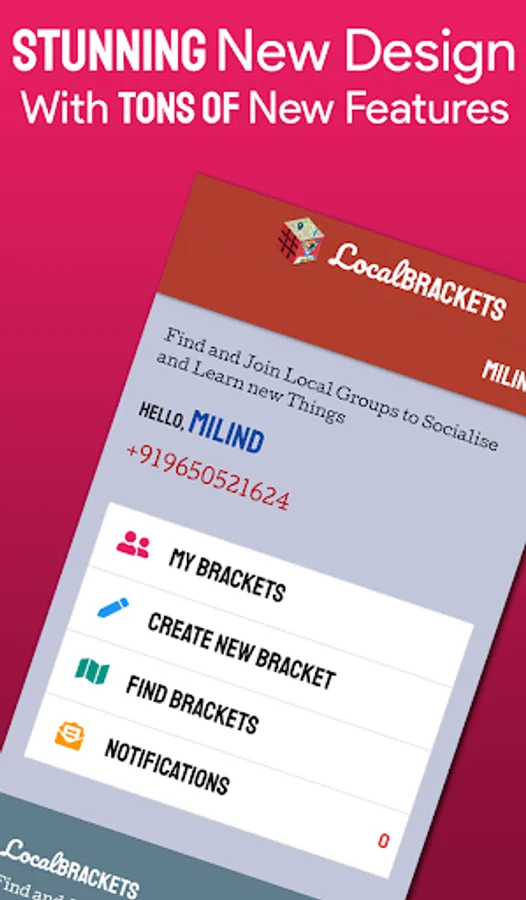 LocalBrackets has a very sleek, minimal and easy to use design - ensuring maximum usability. At the same time, it has tons of new features since the original 'LocalLink'. Security has also been a major concern for the developers. To ensure maximum safety, and minimum Spam, several security features have also been incorporated, including Phone number Verification, Bracket Reporting and Rating, and limits on bracket creation and modification.