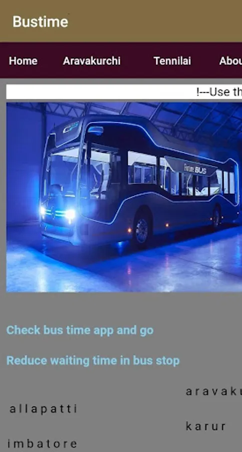 Bustime application can be used to find the local bus timing. It is used to avoid too much of waiting time in the bus top. All the time we cant remember all the local bus timing application help to pick your bus time at any time..