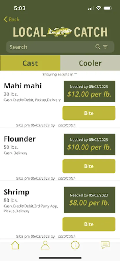 Connecting individuals and businesses inside the commercial fishing industry through an easy to use app. This unique one of a kind app provides an innovative way to buy and sell fresh local seafood. Know who, when, and where your fresh local seafood was caught or acquired. On the selling side, connect with tons of buyers wholesale or retail to keep fresh seafood moving to its end consumer.
