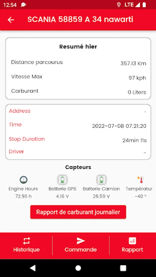 Solution de géo localisation pour les transporteurs avec contrôle de carburant et la température frigorifique ainsi que le contrôle de poids.