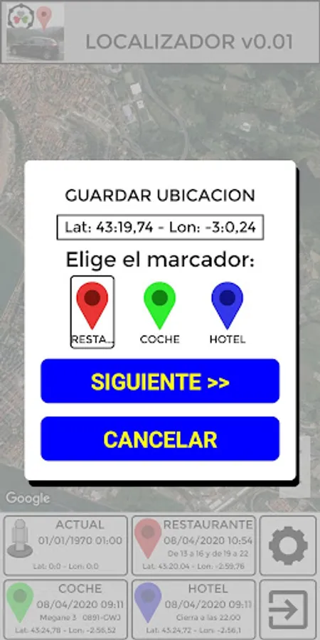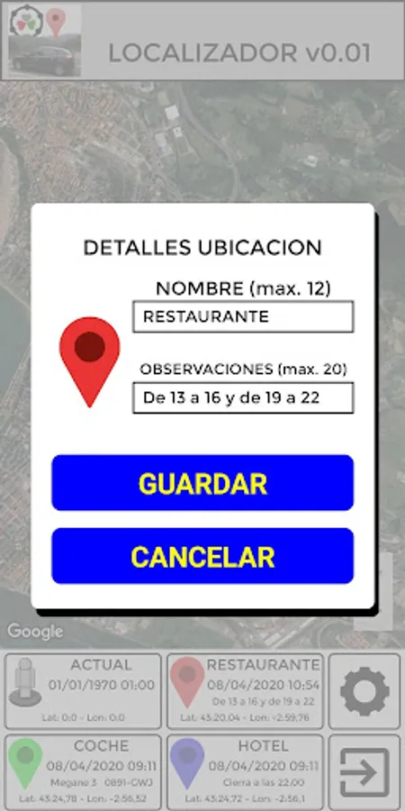 This application is used to save the location of up to 3 sites and then be able to return to them.