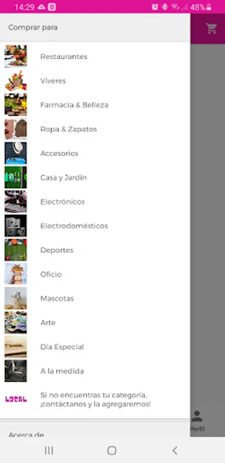 Tenemos categorías de productos muy diversos como Restaurantes, Víveres, Belleza, Ropa y Zapatos, Accesorios, Casa y Jardín, Electrónicos, Electrodomésticos, Deportes, Mascotas, Arte, Productos a la medida. Las formas de pago actuales son targetas de débito y crédito y los métodos de envío varían de acuerdo al producto (perecibles o no perecibles) y de acuerdo al vendedor; si éste utiliza nuestros LOCALchopers o sus propios métodos de envío.