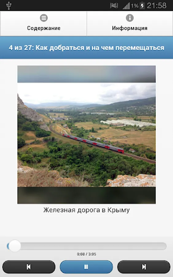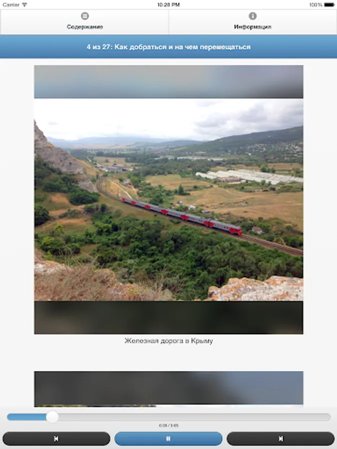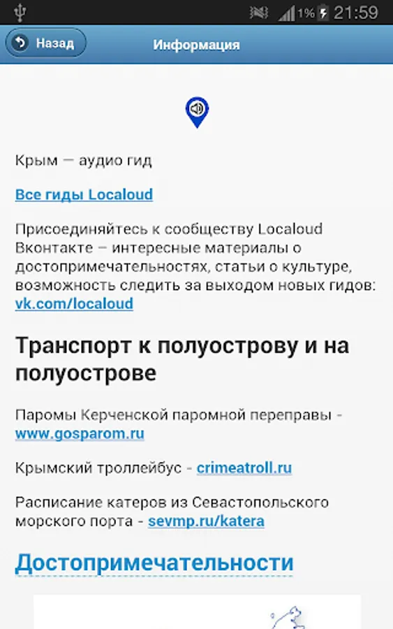 Rest in Crimea could become unforgettable, because this peninsula as if created for trips! Even if you are planning to go it is not their own, and buy travel Tourism, this app will be useful for you - after listening to the guide you will get a picture of the main regions of Crimea on what resorts there and what to expect from the trip. You will be able to determine which area of the Crimea is best suited to you and make a list of places to visit. You will hear reviews of attractions, some tips and tricks that can make your trip easier, more enjoyable, and possibly less expensive.