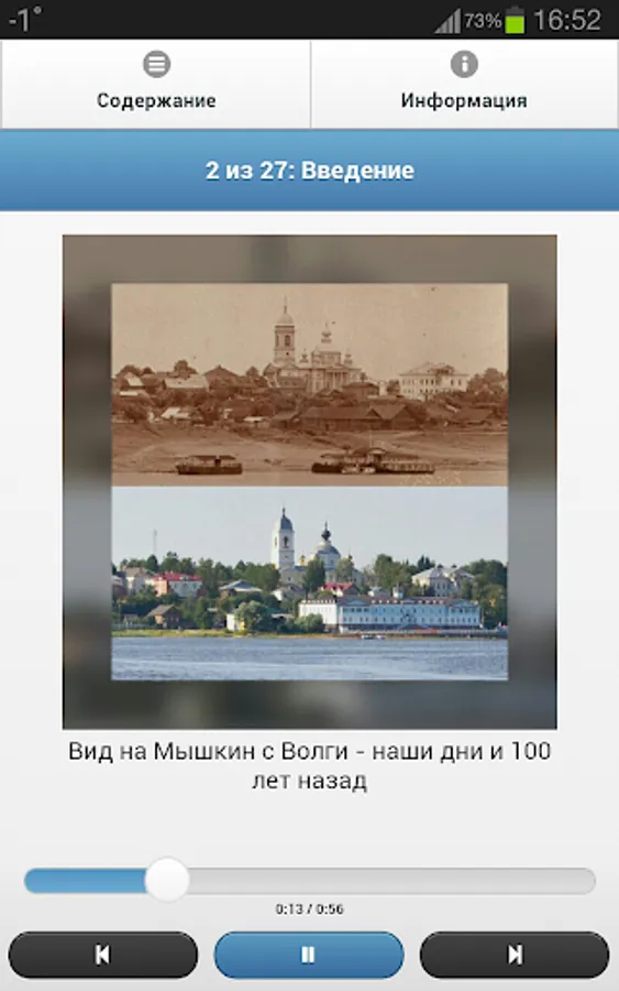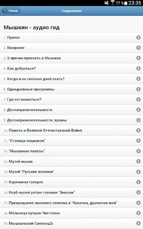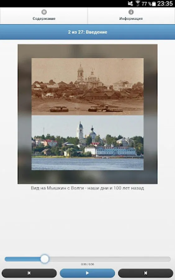 An introductory guide for mobile city Myshkin will give you a general idea of the city as a place for tourism and will be useful for all who care about travel. The app was created in collaboration with the Tourist Information Center of the city of Myshkin.