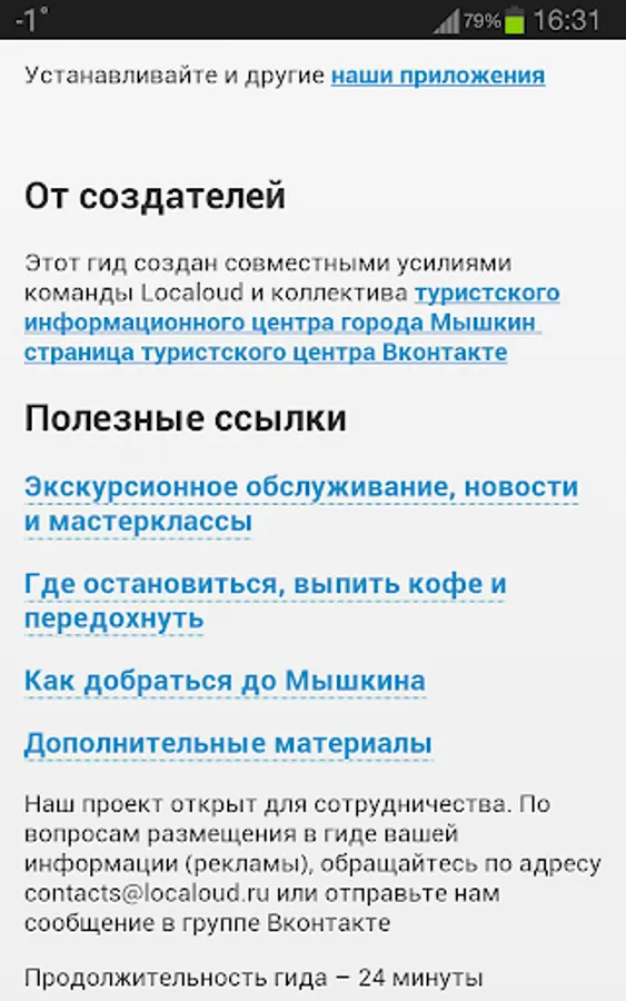 Download this and other mobile guides Localoud - they are perfect for those who walks by himself. We wish you only good rest and exciting journeys!