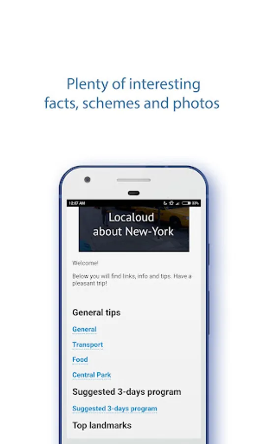 “Information” section contains textual information where you'll find a suggested three days visit plan, some general advice and also tips regarding landmarks and sightseeings mentioned in the guide.