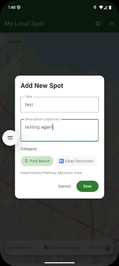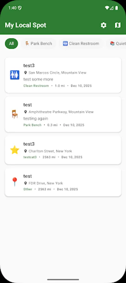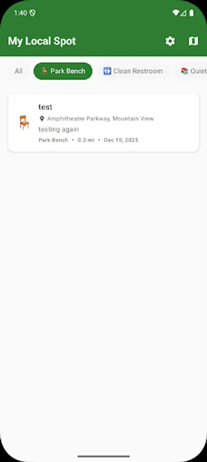 Ever found the perfect park bench, a quiet study spot, or a hidden viewpoint that you wanted to remember? My Local Spot helps you pin and organize all those special places that make your neighborhood unique.