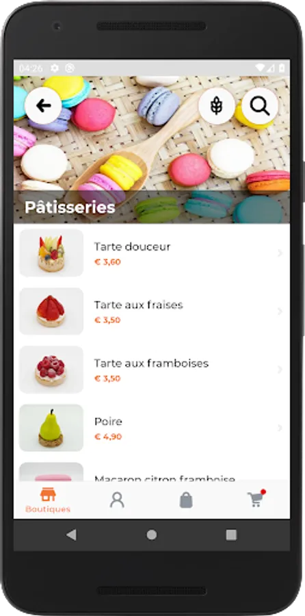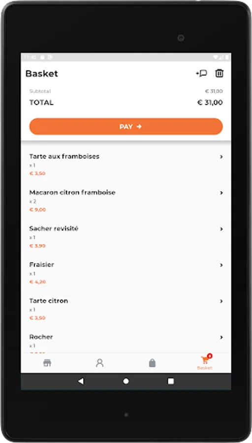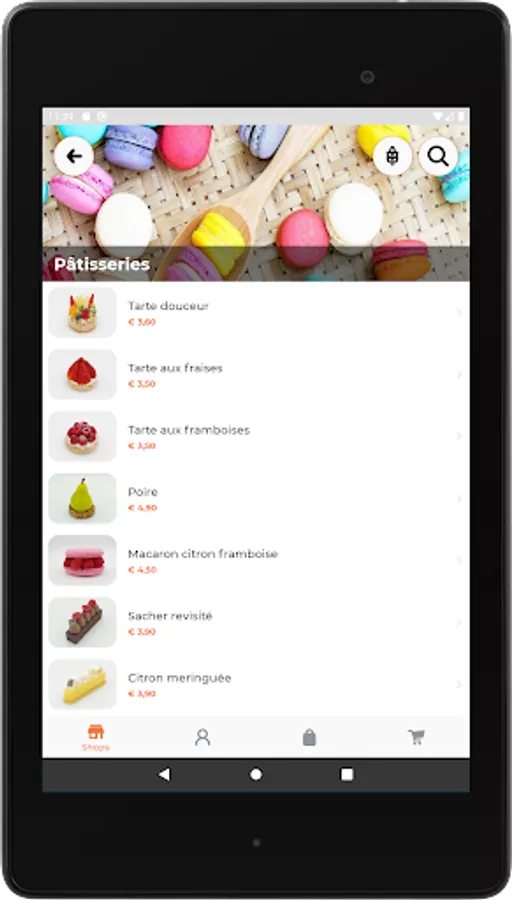 Navigate between the different tabs, from Pastry through the
