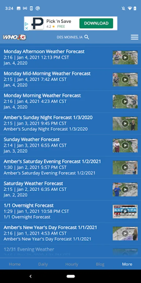The WHO-TV Mobile Weather App includes: