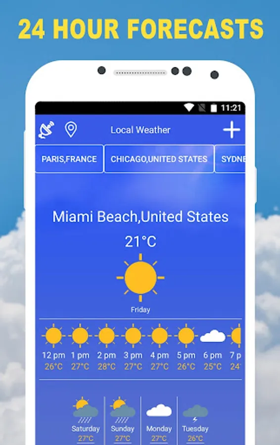 Our application gives you every information regarding temperature, rain forecast, wind speed, cloud coverage, and much other important information that other apps might not provide. You can also view the weather conditions of most cities in the world, from small towns to big cities. Take a look at our app and you’ll realize this is the only weather forecast app you will ever need!