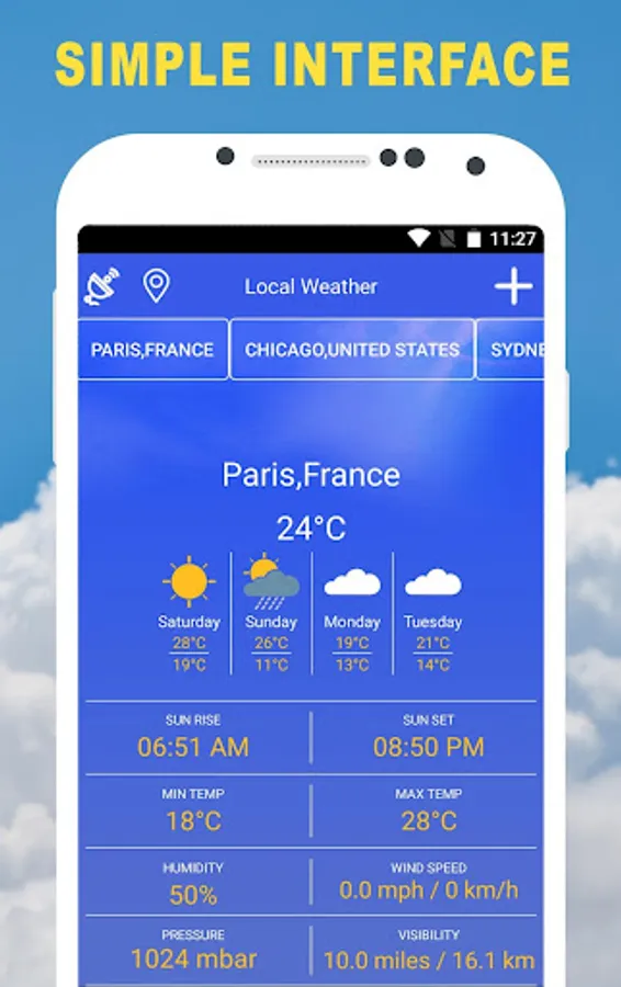 You can see from above that this daily forecast app provides several features and gives comprehensive information. This app works in every climate and most cities in the world. Want to know the exact temperature of your location in celsius? Just type in the city’s name and select it. We will immediately display the info of that location and bookmark the cities you are interested in for easy access.