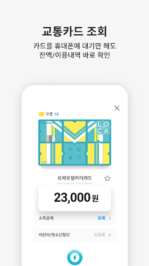 ㆍCheck your card balance and transaction history, (supporting Cashbee card, LOCA Mobility card and Korea Travel Card)
