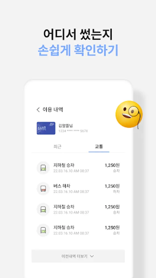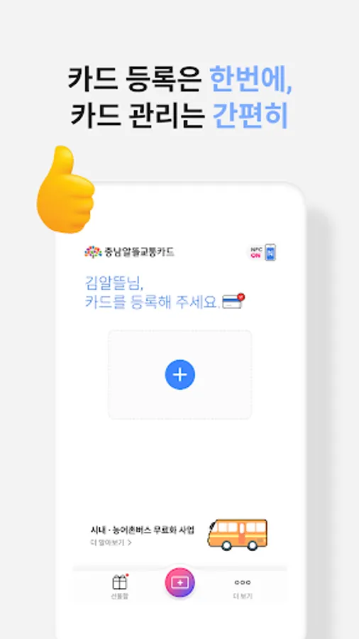Manage your Chungnam thrifty transportation card easily and conveniently with the app.
