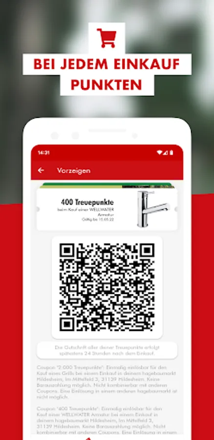 From now on you can experience the shopping of the future at hagebau Hildesheim, Im Mittelfeld 3, 31139 Hildesheim. Simply download this app, register and off you go. Receive individual coupons on your mobile phone when you shop directly at the hagebaumarkt and collect our loyalty points. Furthermore, the endless search for your desired products is over: simply search for the desired products in the app and have the location displayed in the hagebaumarkt. You can even check the availability and price of the products you want the night before. You can easily transfer your partner card to the app during registration. If you don't have a partner card yet, simply get it directly in the app and save 3% on every purchase.