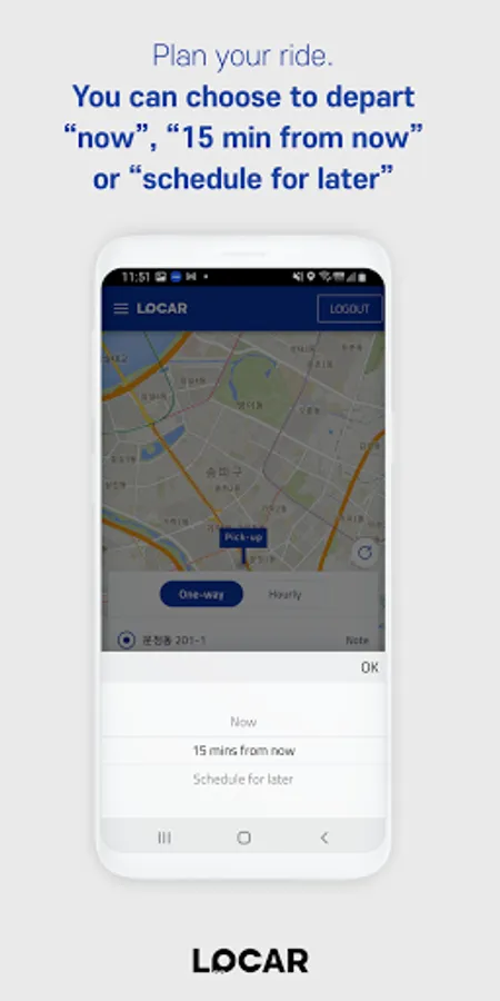 You can choose to depart “now”, “15 min from now” or “schedule for later”