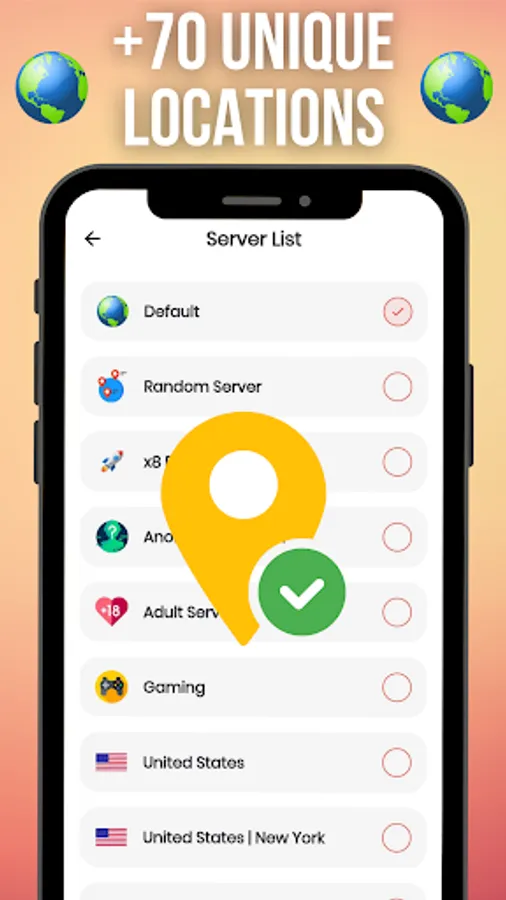You can connect to USA, Canada, Denmark and 60 more countries! We give you free coordinates to connect! Change your phone or device Coordinate and browse the internet freely.