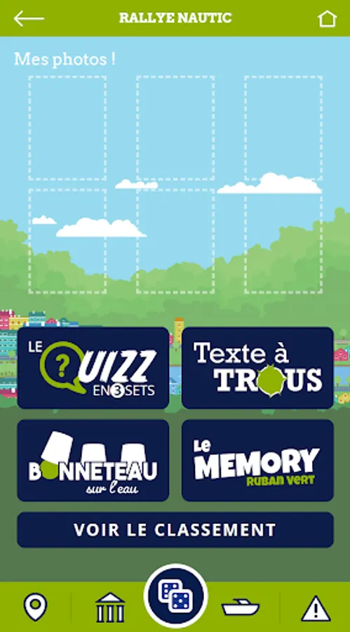 The RALLYE NAUTIC consists of 6 challenges: 3 timed quizzes of knowledge about Nantes and its region, 1 text with gaps and 2 games of skill and memorization.