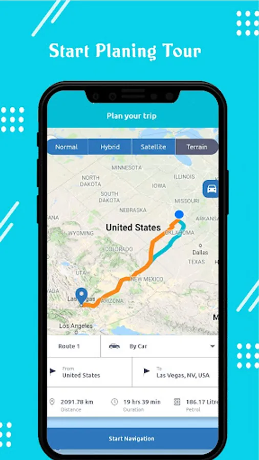 • Distance tracking in KMs and Time to Location with Geo Pins to locate places of interest