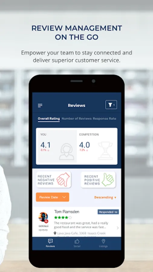 Protect your brand's reputation no matter where you are with Chatmeter's Mobile app. Now you can access all the best features of the LocationHQ dashboard from your phone. From listings updates to review management, this app streamlines how your brand puts customers first by communicating with them anytime, anywhere.