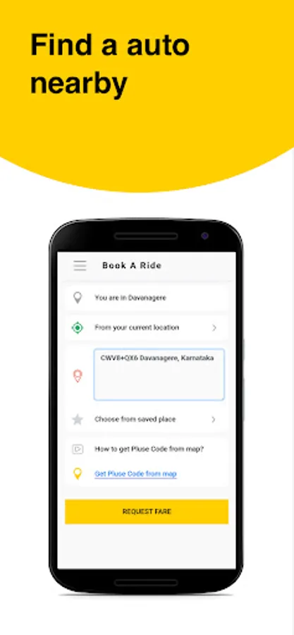• Set your destination location from the map using plus code or enter the address (E.g. Home, Office, etc.)