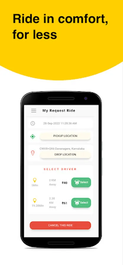 • Choose from multiple drivers based on their rating, price and tap Ride now