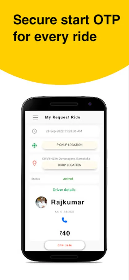• Secure OTP: Stay safe from the start with a secure one-time password for every ride.