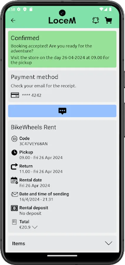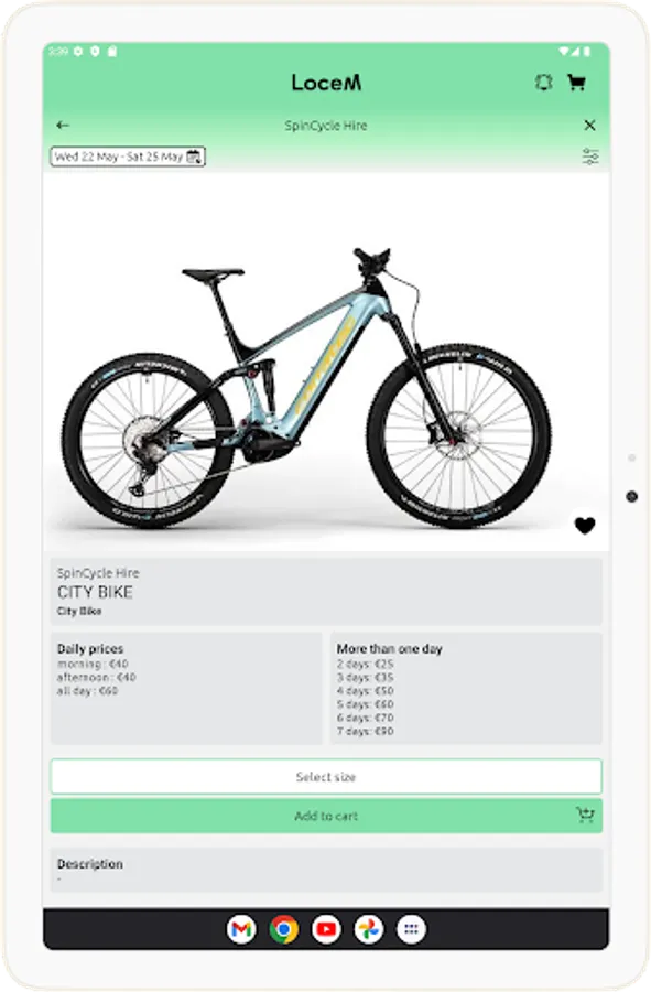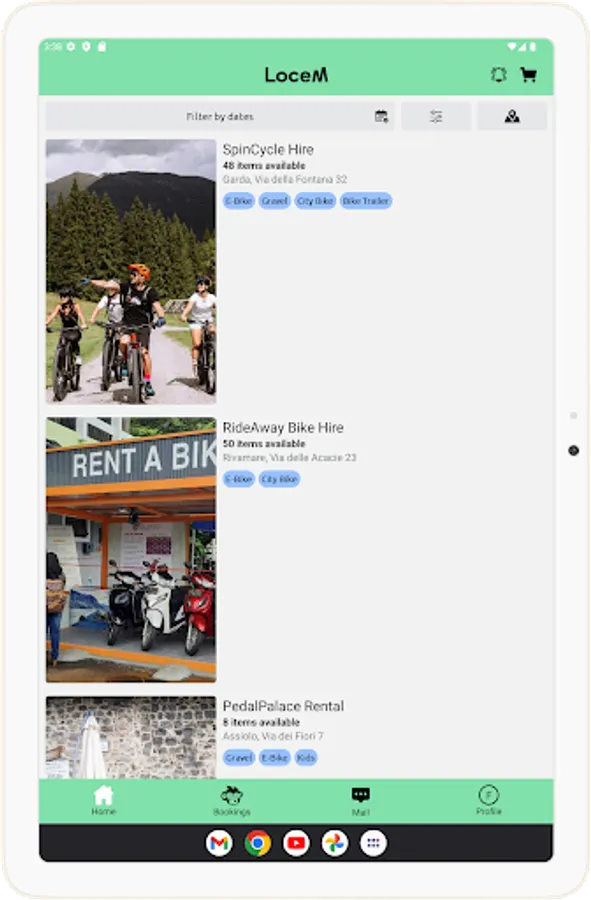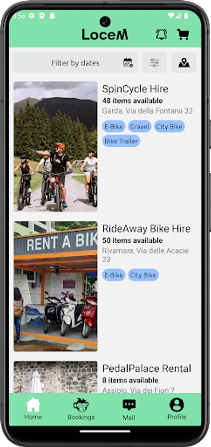 LoceM App matches local rents with those visitors who want to fully live the place where they are. Rent specific items or equipment through the app to have an easy, fast and safe rental experience.