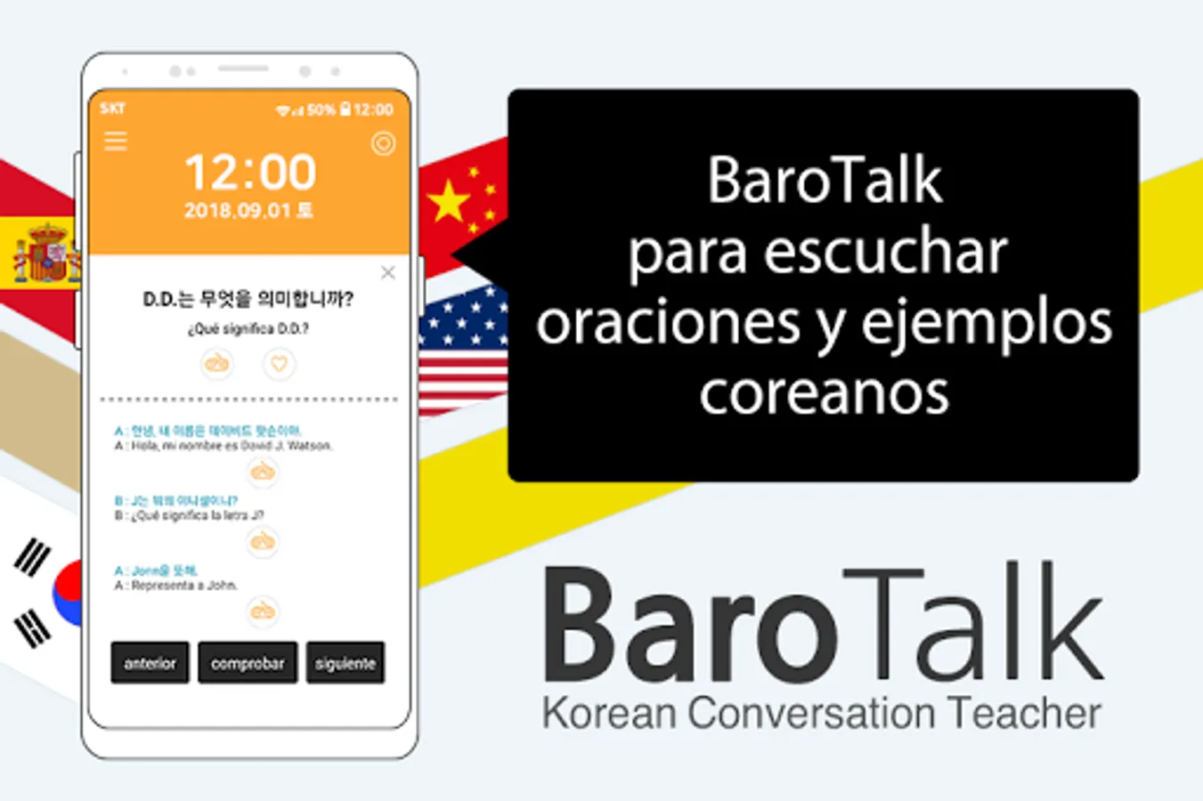# Our 'BaroTalk-Korean conversation' provides real-life content for Koreans. It is also useful to start a conversation in real life because there are good example sentences together.