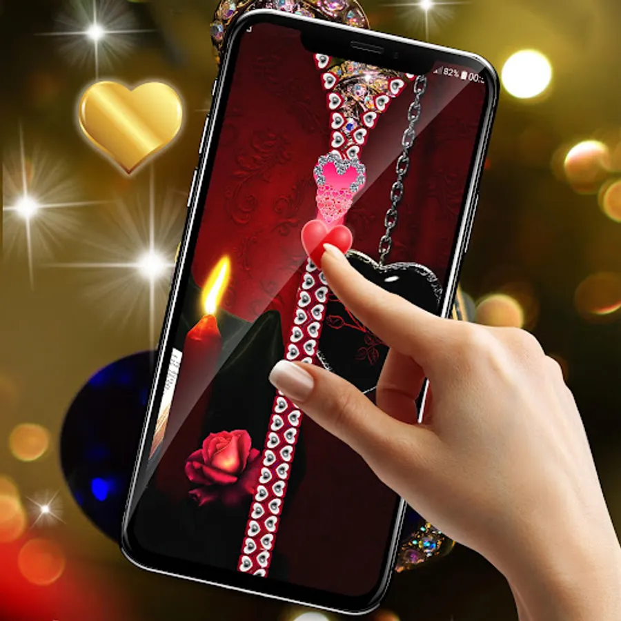 Would you like to unlock your phone in a really unique and customizable way? With our new Valentines day zipper lock screen, you have the option to choose your own wallpaper for the locker screen and for your device background. Also change the zipper style, color, and design with just a simple click until you find the best combination that works for you.