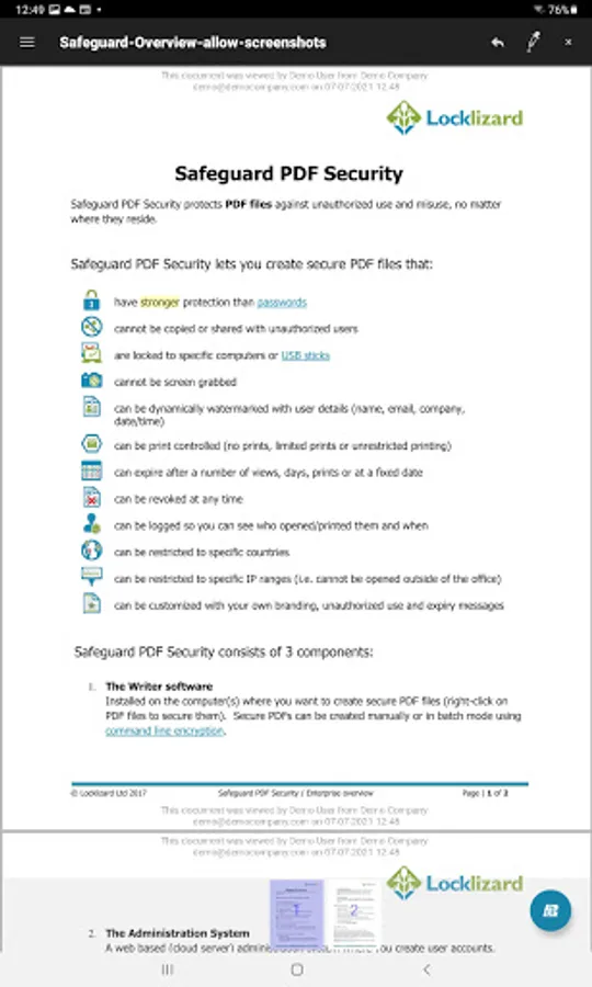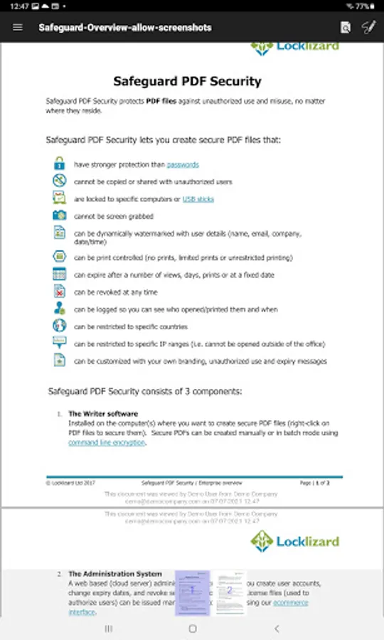 Locklizard Safeguard Viewer is a FREE app that lets you view Locklizard secure PDF documents (PDC files) on an Android device. Safeguard Secure PDF Viewer supports PDC files protected with Safeguard PDF Security and Enterprise PDF DRM Security.