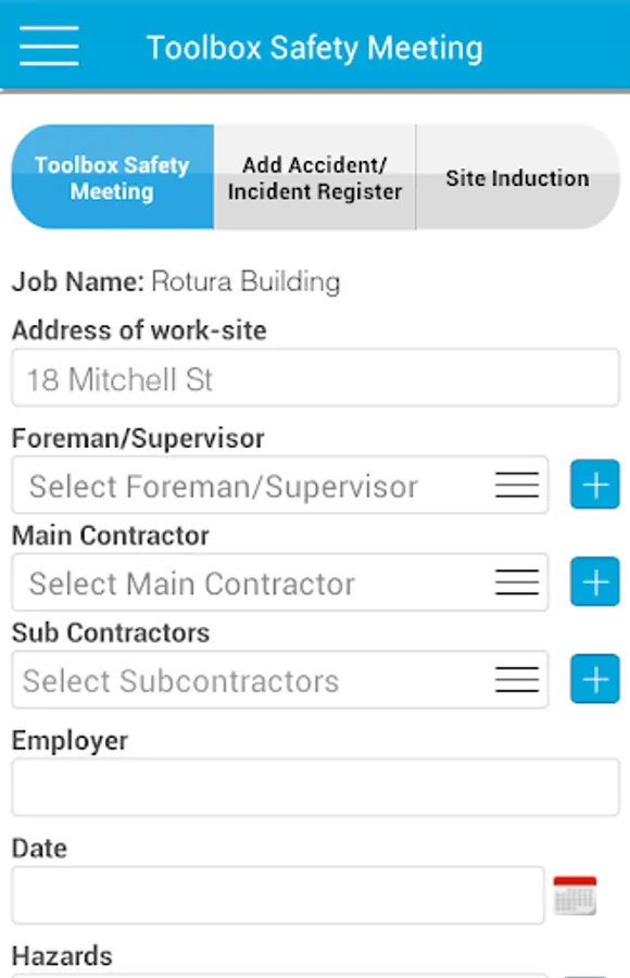 -Health and Safety Worksheets including Toolbox meetings, Site Induction and Accident/Incident Register