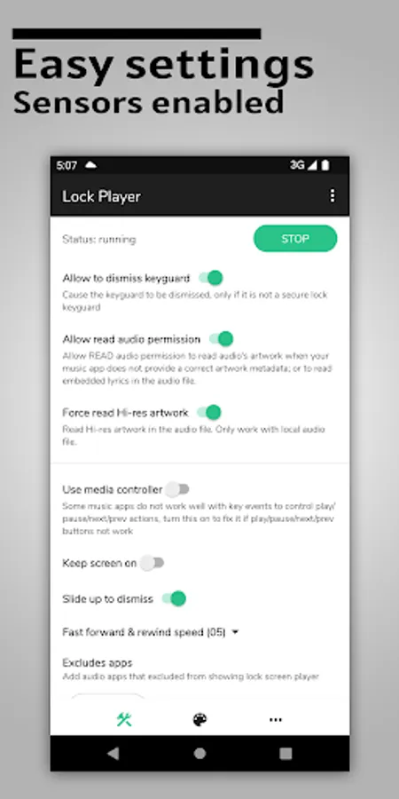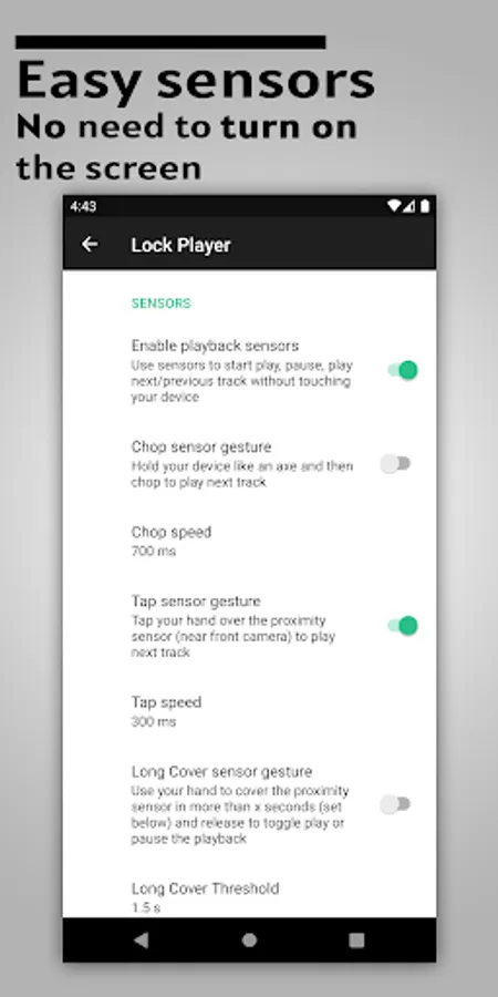 🔥 Support sensor controls. You don't have to turn on your screen to navigate the playlist. Turn screen off and use our sensors to play, pause, next and back song.